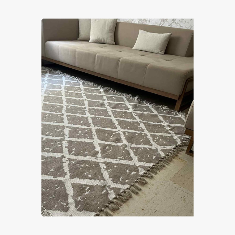 Apportez une touche d’authenticité à votre décoration avec ce Margoum moucheté double face, un chef-d’œuvre du tissage tunisien. Ses motifs mouchetés subtils et son design réversible en font un choix polyvalent, idéal pour embellir vos espaces de vie.